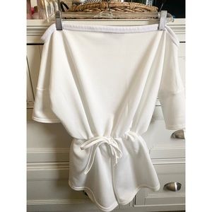 NWOT. Never worn! Cozy white material, perfect for lounging at home. Has a tie at the waist. US Size 4. Make me an offer, willing to negotiate 🌟