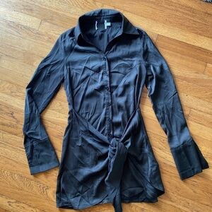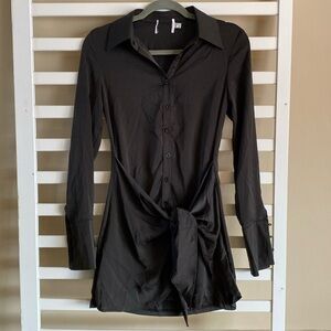 NWOT Princess Polly Bodeni Long Sleeve Button Down Black Mini Dress Size 2