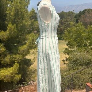 Elegant maxi dress with green stripes. Sleeveless design. Perfect for summer outings.