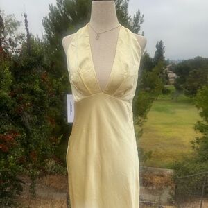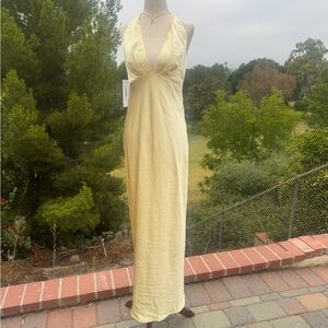 NWOT Princess Polly Soft Yellow Halter Backless Dress