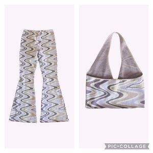 NWOT Princess Polly Zena Knit Flare Pant Halter Top Set in Multi Purple Size M/L