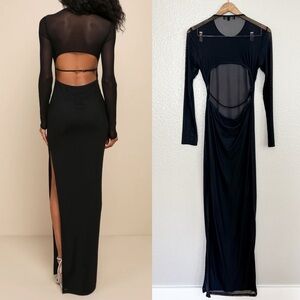 NWOT Pristine Poise Black Mesh Cutout Long Sleeve Maxi Dress