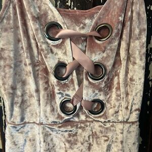 NWOT Project Runway XS Crushed Pink Velvet Sleeveless Lace Up Dress Mini Strappy