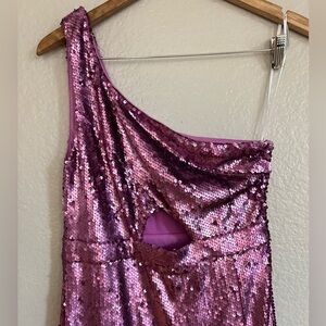 NWOT Prom Perfect Pink Sequin One-Shoulder Cutout Mermaid Maxi Dress