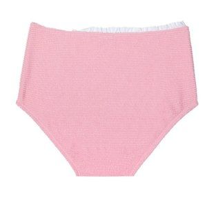 Sweet, frilly ruffles trim the top and high-waist bottoms of this stylish two-piece swimsuit perfect for sunny days spent beachside.