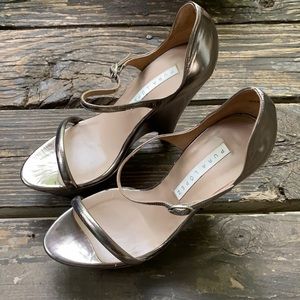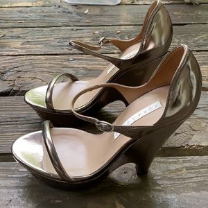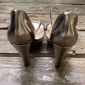 Pura Lopez Platform & Wedge sandal in size 40 (European) in beautiful pewter color. See size converter pic.