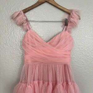 NWOT Pure Radiance Pink Mesh Swiss Dot Backless Tiered Maxi Dress