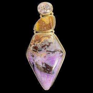 NWOT vintage pendant that’s also a pin. I wish I could tell you the designer or the names of the stones but when we recovered from storage this had no paperwork. It looks like sterling silver but I can’t find a stamp. See photos for measurements. Visit my closet for more new vintage jewelry!