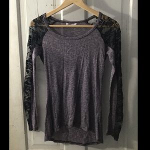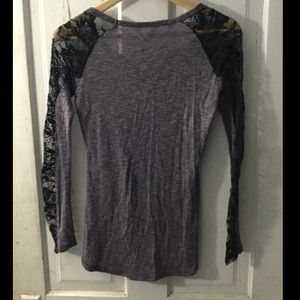 NWOT. Purple shirt w/ fabric & see-through sleeves