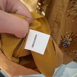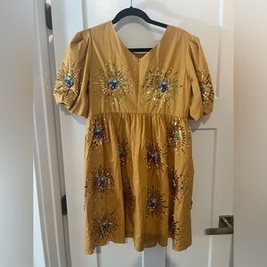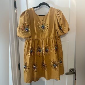 Beautiful QUEEN OF SPARKLES Sunshine Dress. Mustard mini dress with embellishments. Zipper closure.