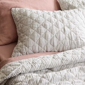 NWOT QUINCE European Linen Stripe Quilted Sham Set MIST stripe 1048