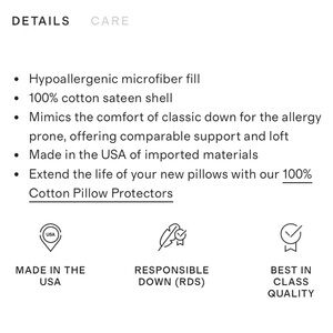 NWOT QUINCE Premium Down Alternative Pillow Soft Standard 3908