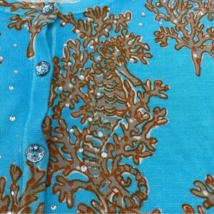 NWOT Quacker Factory Coral Seahorse Ocean Print Button Knit Short Sleeve Blouse