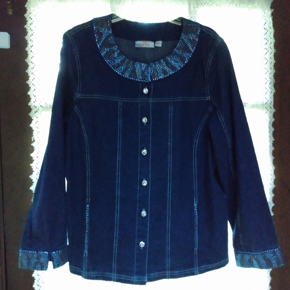 NWOT Quacker Factory Rhinestone Denim Jacket Blue L