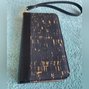 NWOT Queork Black & Gold Cork Phone Wallet Wristlet