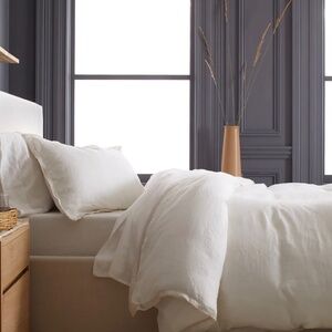 NWOT - Quince European Linen Contrast Flange Duvet Cover Set - White/Sand