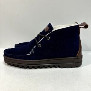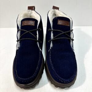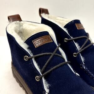 NWOT Quoddy Men's Huggeur Chukka Navy Blue Suede Shearling Lined Vibram 8