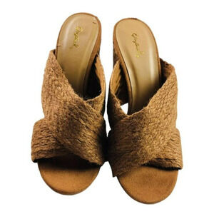 NWOT Qupid Womens Criss Cross Strappy Block Heels Sandals Brown US 10 EU 41