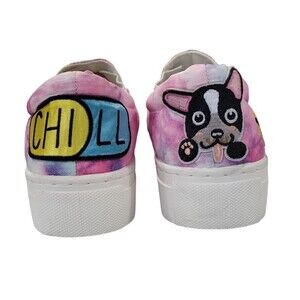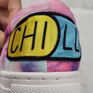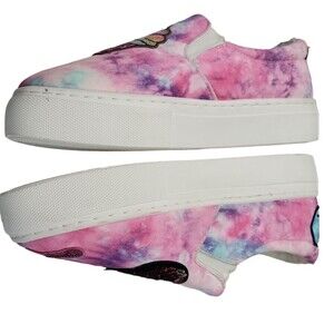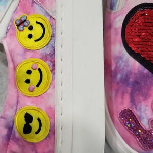 NWOT Lulu's Qupid women's Emoji embroidered sweet love heart tie dye slip-on flat 9, pink red blue