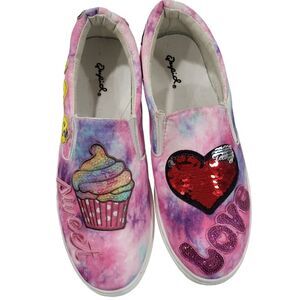 NWOT Qupid women's Emoji embroidered sweet love heart tie dye slip-on flat 9