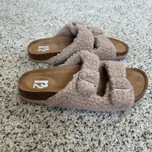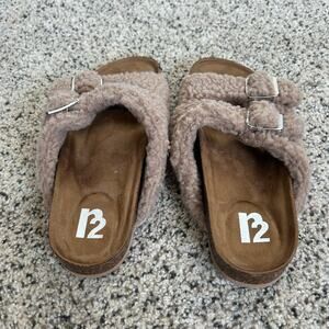 New without tags, R2 Womens Bernette Sherpa Double Buckle Slide Sandals