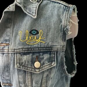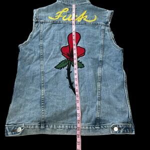 NWOT RARE Unif Embroidered “F*ck U” Denim Oversized Slim Cut Vest Size Medium