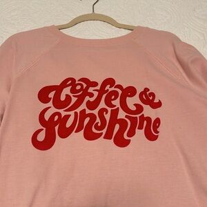 NWOT RARE Wildfox “Coffee & Sunshine” Pink & Red Pullover Size S. Fits closer to a M/L because it’s so oversized. Dimensions in photos. • Wildfox • long & loose • color: pink, red • graphic “Coffee & Sunshine” • pullover • oversized fit • comfy and cozy • raglan sleeves • crew neck • banded hem , cuffs • pairs well with jeans, leggings • perfect for the coffee/sunshine lover • 58% cotton, 39% polyester, 3% spandex •• BUNDLE & SAVE