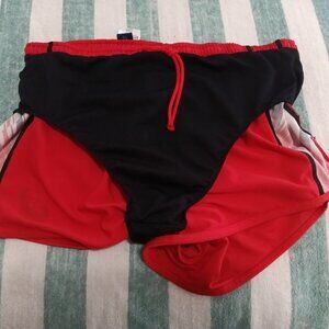 NWOT RED ASICS RUNNING SHORTS WITH SIDE ACCENTS, SIZE "XL", (~33"-35")
