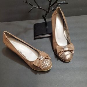NWOT RED DRAGONFLY Bow-Tied Wedge Heel Shoes