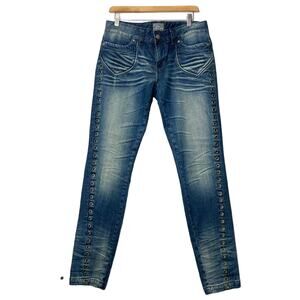 NWOT REROCK FOR EXPRESS Jeans 12 Blue Stonewash Skinny Studded Distress Cotton