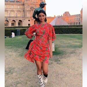 NWOT RHODE Pia Resort Red Floral Puff-Sleeve Ruched Mini Dress Size XS
