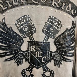 NWOT RMC patch embroidered Live To Ride Ride To Live long motorcycle jacket. XL