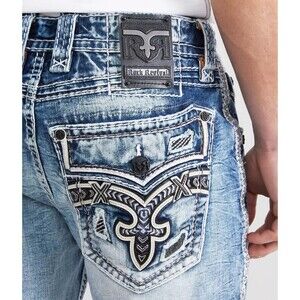 NWOT ROCK REVIVAL MEN'S SHORTS JEAN SHORTS 46 Hymie Stretch