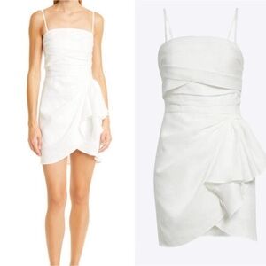 Turn heads in this elegant floral jacquard minidress crafted in a gracefully pleated, draped silhouette for chic style. Tiny dot by bow sewing! Stunning statement piece for Bridal, Bride, Engagement, Elopement, Wedding