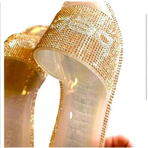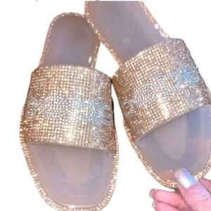 NWOT ROSE GOLD BEBE RHINESTONE FLAT SLIDES SIZE 8 EXTRA BLINGY✨✨✨