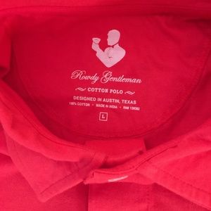 This is a rare find, ROWDY GENTLEMAN short-sleeved collared Polo shirt. This is brand new, never worn, or washed. It is a size L, Large. It has a front pocket and Rowdy Gentleman logo on the top of the pocket. It has a three-button front. Short-sleeved. It is 100% cotton, Designed in Austin, Texas, made in India.