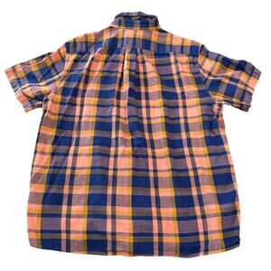 NWOT ROWM Size Large 100% Cotton Short Sleeve Plaid Shirt Peach Navy Blue Collar