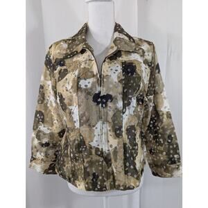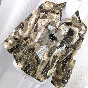 Oh, this jacket, blazer, just rocks! In an abstract pattern of fall leaves in brown, tan, and cream, the sheer fabric has drops, or spots of sheer see-through- like rain on the leaves, maybe?! A super interesting and chic jacket at a light transitional weight! Zipper front, Size 10, ***NEW Without Tags, and Guaranteed Superb by Lily @HauteClub!* *Measurements always available on request!*