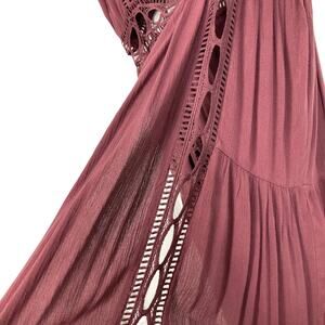NWOT RUE21 Cardigan Cover-Up Robe Dress M Burgundy Crochet Ruffle Button Maxi