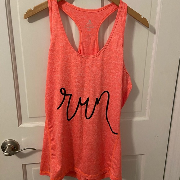 NWOT “RUN” racer back tech tank. Heathered Neon orange color. Fits like a larger large or xl.