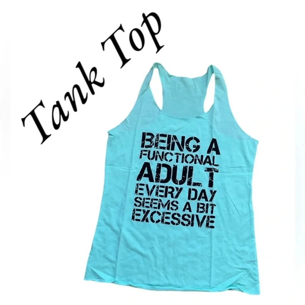 NWOT Graphic Tee. Racerback. Says BEING A FUNCTIONAL ADULT EVERY DAY SEEMS A BIT EXCESSIVE