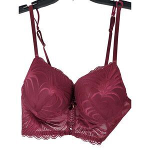 NWOT Rachel Roy Burgundy Red Lace Semi Sheer Padded Bra Size 36B