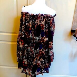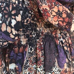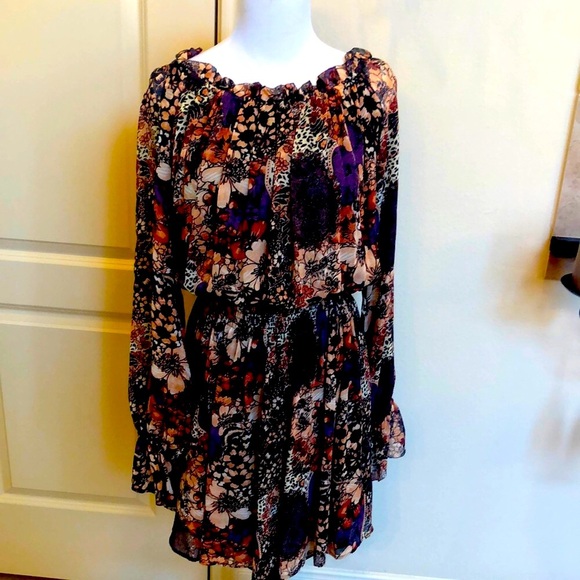 This is perfect for fall. The colors are so fun. This is fully lined. The dress is silk. Elastic waist. Can be worn on shoulders or not. Gorgeous! Would be so cute with black or brown boots!