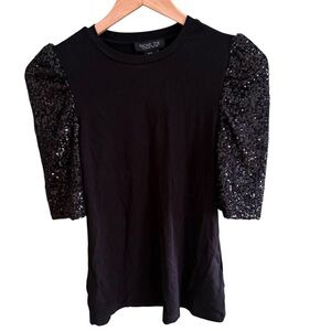 NWOT Rachel Zoe, women's black blouse with sequined puff short sleeves size XS
