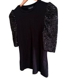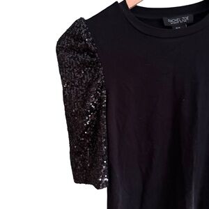 Elevate your style with the Rachel Zoe Black Sequin Sleeve Top. Perfect for a night out, this top features dazzling sequin sleeves that add a touch of glamour.