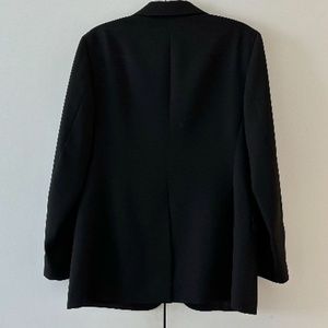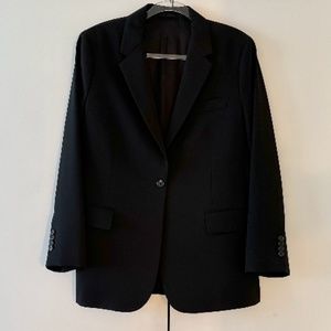 NWOT Excellent condition, worn once. CALVIN KLEIN 205W39NYC by Raf Simons’ women’s blazer, made in Italy. Designed in black wool gabardine to hold the oversized shape with a strong shoulder, notch collar, single-button closure, front patch pockets and 4-button detail on each sleeve. Measures: 19” underarm to underarm; 29” shoulder to hem. Beautiful piece!