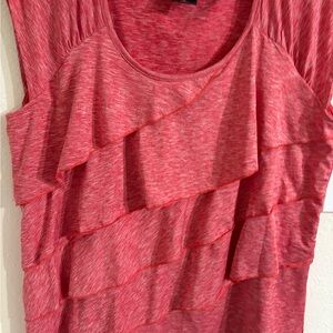 NWOT Rafaella Stylish coral blouse with layered ruffles. Perfect for casual or dressy occasions. From a clean and smoke-free home.