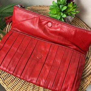 NWOT Rafe New York Red Leather Large Clutch Envelope Tassel Zippered