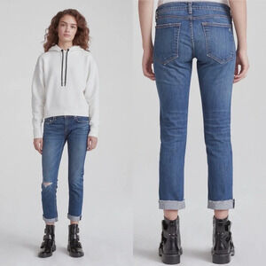 NWOT Rag & Bone Dre Slim Boyfriend Jean Java Blue w/Holes Raw Hem Distressed