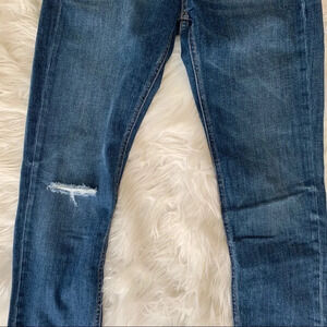 RAG & BONE • Dre Slim Boyfriend Jean Java Blue w/Holes Raw Hem Distressed Casual Women’s